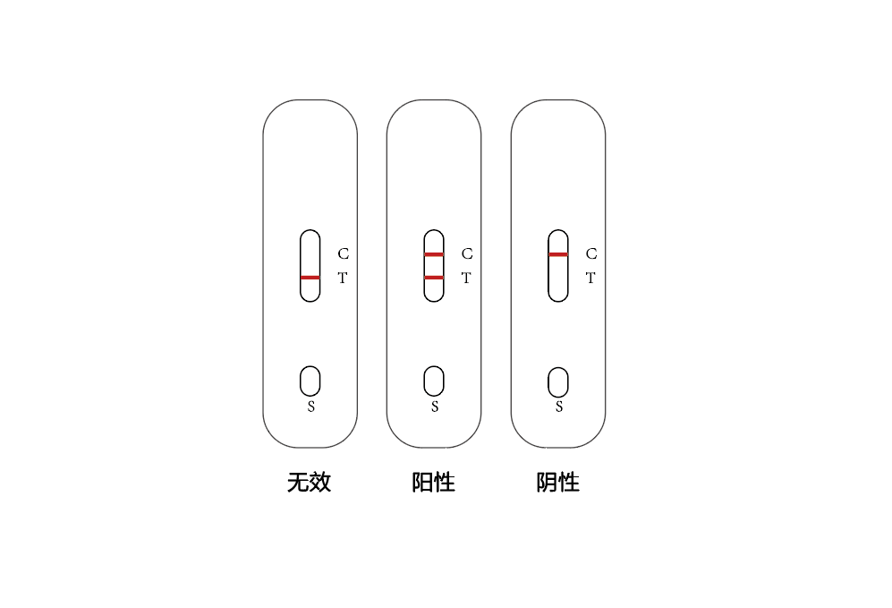 無效:質控區(qū)(C)未出現紅色條帶,無論檢測區(qū)(T)是否出現條帶。表明結果無效,需重新取試紙條重測。
