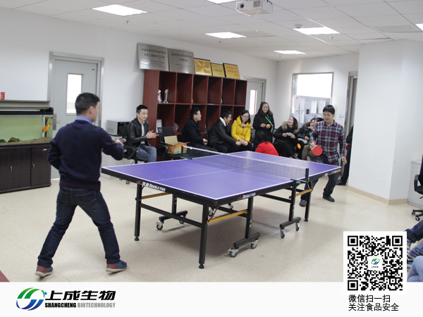 12月15日下午,在武漢上成生物會議室順利舉辦了2016年第三屆員工乒乓球比賽,此次比賽分為:男子單打、女子單打、男女混雙兩個部分,采用淘汰制與循環(huán),參與的員工多達20多人。