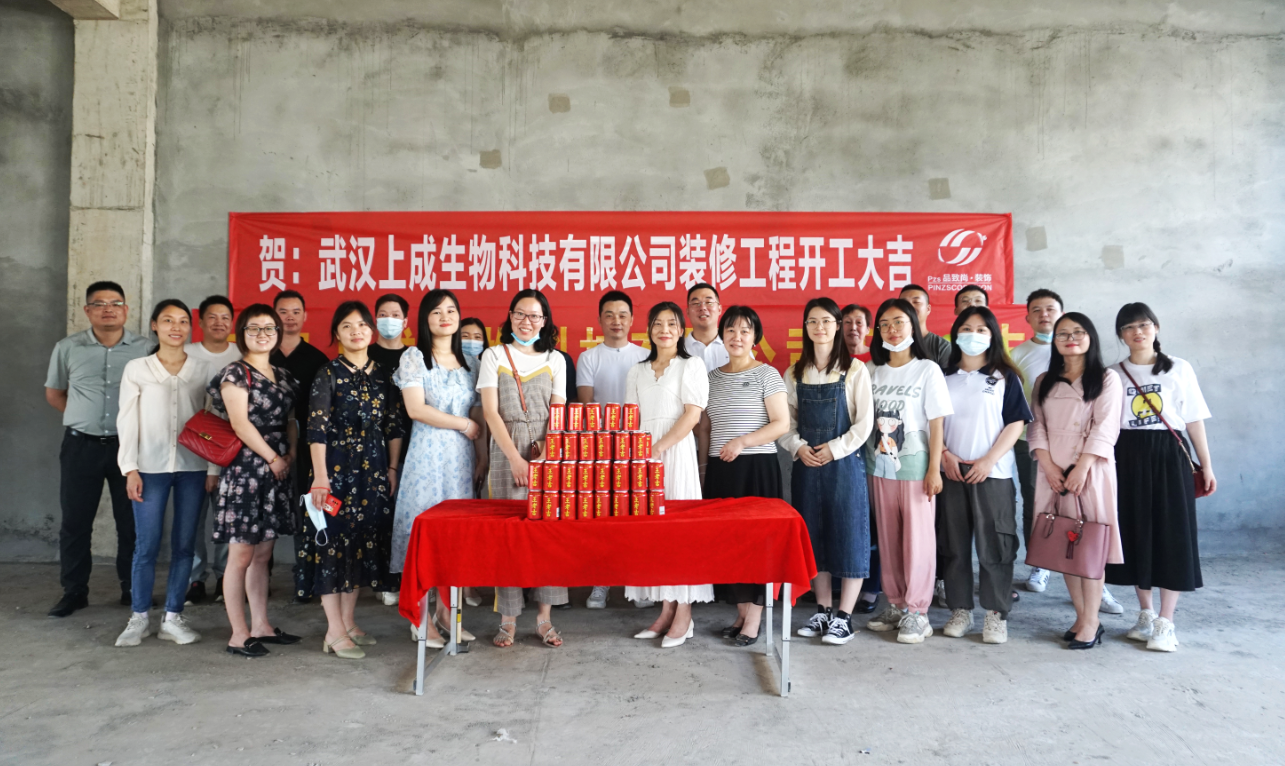 2022年6月8日,武漢上成生物各部門代表齊聚在公司辦公新址——東湖高新國際健康城3棟,舉辦公司裝修開工儀式。