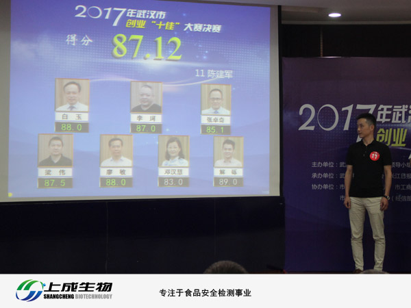 來參加比賽的20家企業(yè)都是經(jīng)過各區(qū)層層選拔推選的優(yōu)秀企業(yè),上成生物代表洪山區(qū)推選企業(yè)參加此次比賽。經(jīng)過前期的初賽、復(fù)賽,一路過關(guān)斬將,殺入決賽。決賽階段,上成生物總經(jīng)理陳建軍上臺,對公司現(xiàn)階段發(fā)展情況和未來規(guī)劃做了陳訴。臺下評委現(xiàn)場提問打分。上成生物獲得87.12分的好成績。經(jīng)過比賽,最終上成生物獲得“十佳”提名獎。