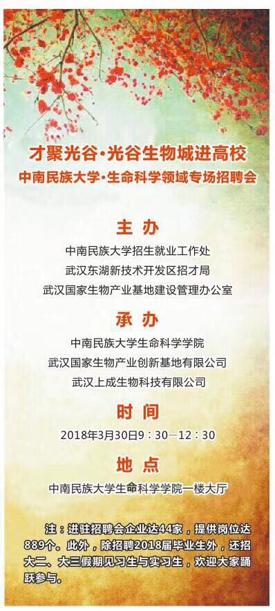 “才聚光谷?光谷生物城進高校”中南民族大學專場招聘會