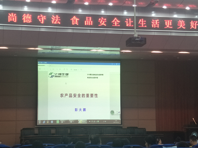 下午2點(diǎn)半,武漢市洪山區(qū)白沙洲農(nóng)貿(mào)市場(chǎng)相關(guān)人員及商戶在武漢科技大學(xué)學(xué)術(shù)報(bào)告廳參加食品安全大講堂活動(dòng)。針對(duì)農(nóng)貿(mào)市場(chǎng)管理人員、商戶和相關(guān)從業(yè)人員進(jìn)行培訓(xùn)。培訓(xùn)以專家講座形式開展,由上成生物技術(shù)顧問(wèn)彭大鵬教授和劉潔總工程師就《農(nóng)產(chǎn)品安全的重要性》和《農(nóng)產(chǎn)品安全的質(zhì)量管控》進(jìn)行專題講座。通過(guò)講座,向食品管理人員和從業(yè)人員解讀法律法規(guī)知識(shí)和食品生產(chǎn)經(jīng)營(yíng)管理安全規(guī)范,科普食品安全法律法規(guī),提高食品安全生產(chǎn)經(jīng)營(yíng)的責(zé)任意識(shí)和道德底線。