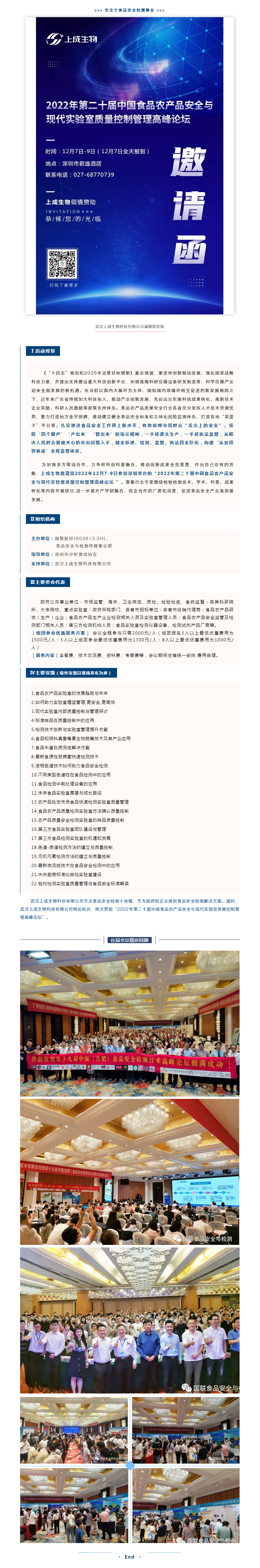 洞悉行業(yè)前沿,上成生物邀您相約第二十屆食品農(nóng)產(chǎn)品安全高峰論壇